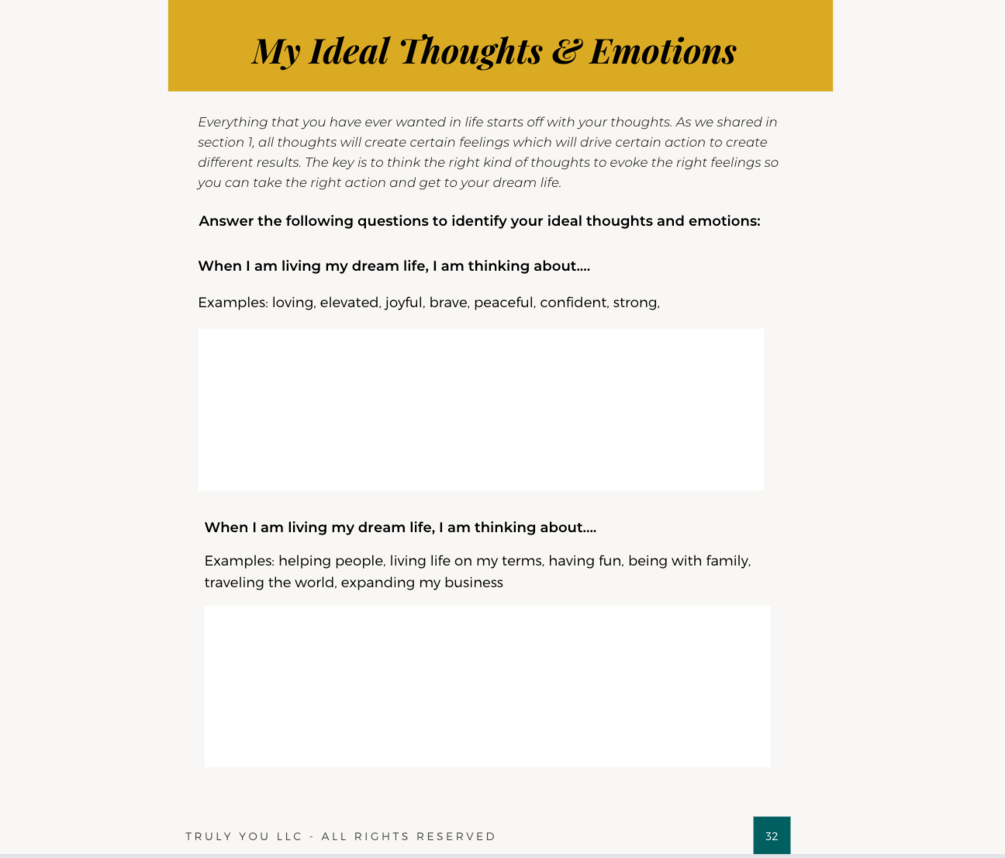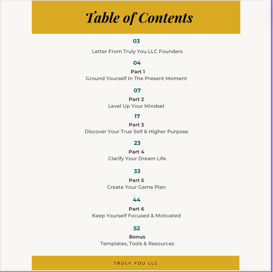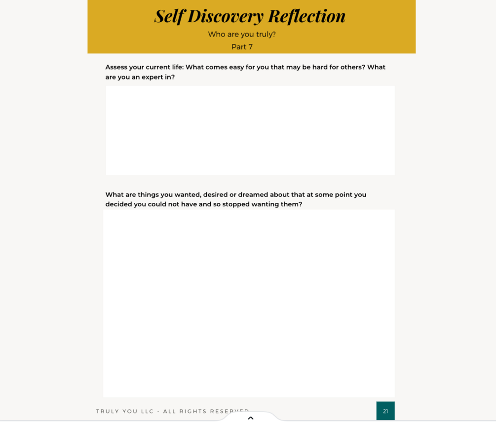 Truly You LLC Coaching & Consulting has designed a 60 + page comprehensive self discovery and intention setting workbook jam packed with gems that will transform your life!
